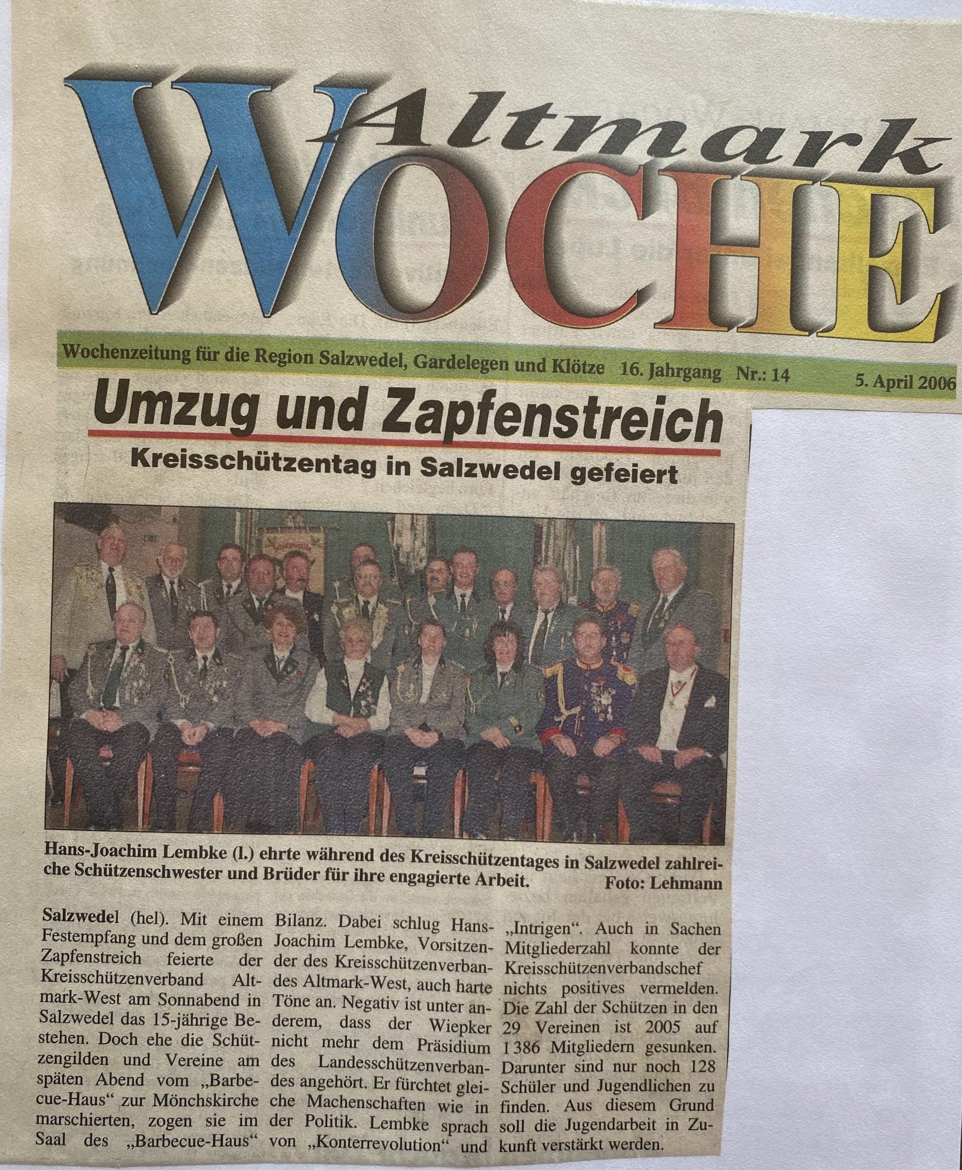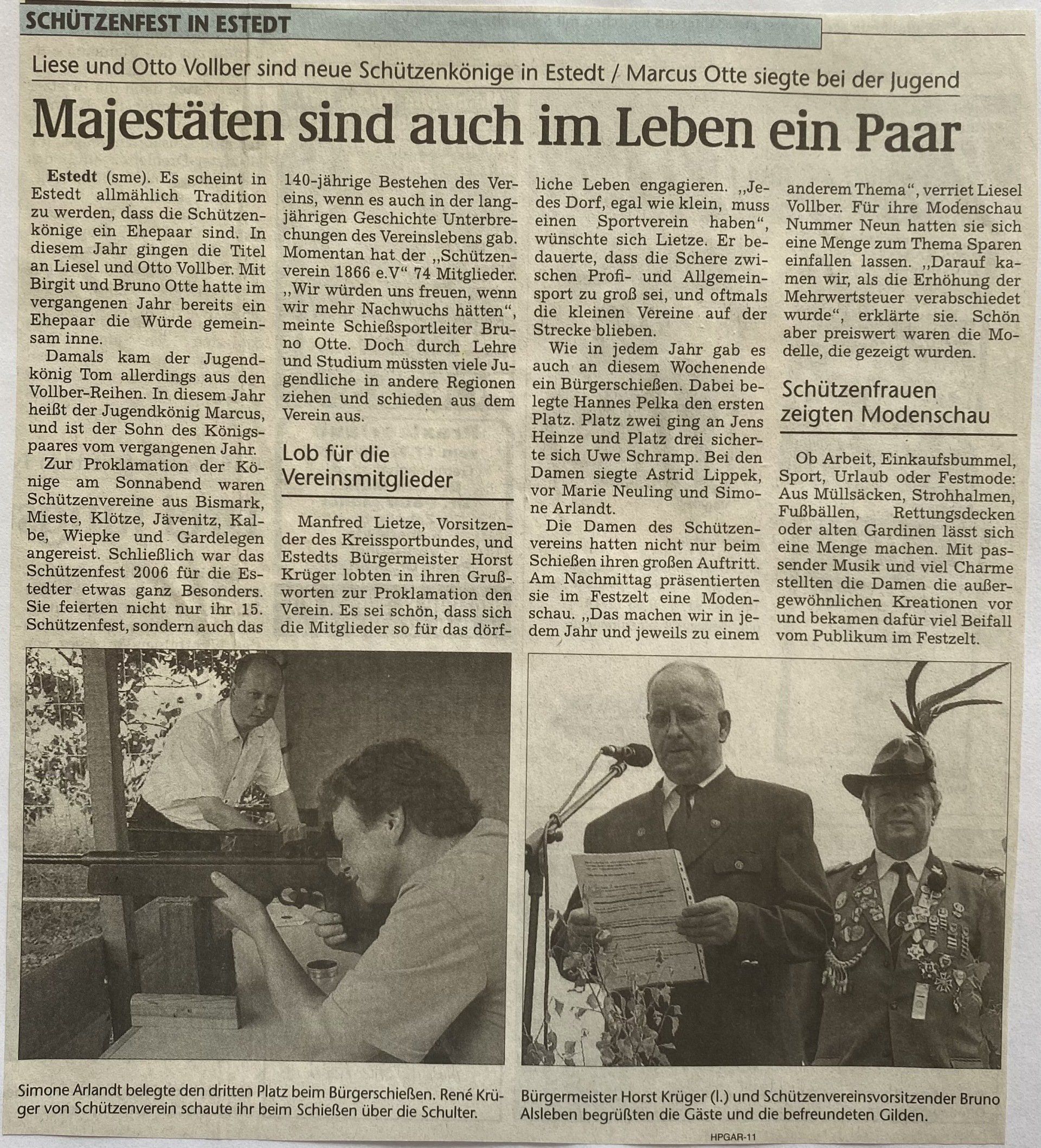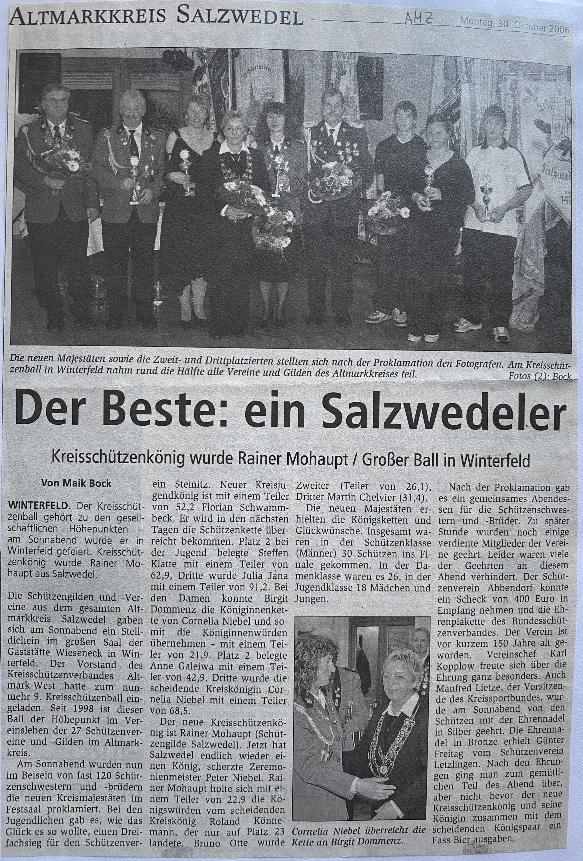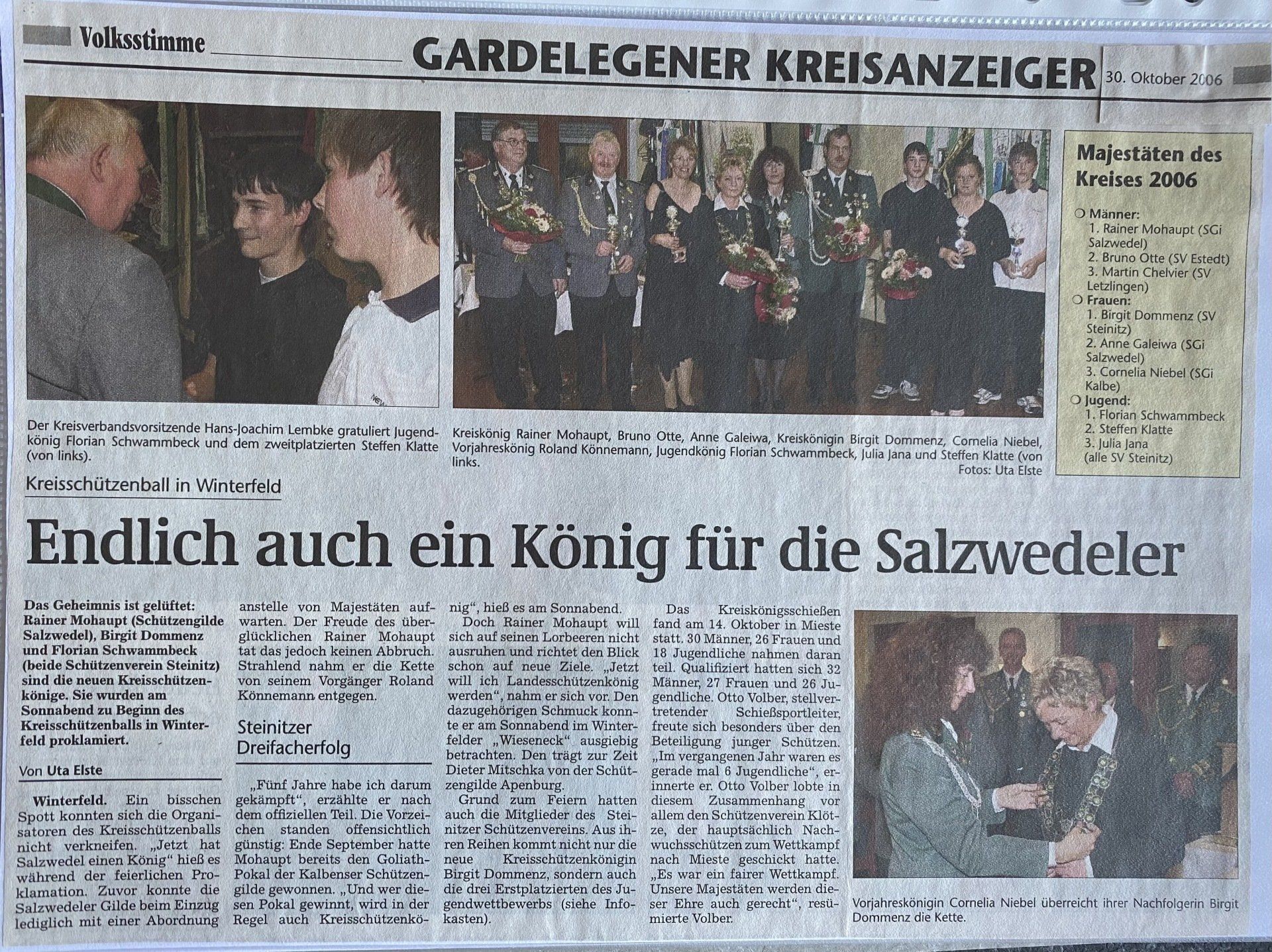 Hier finden Sie eine Liste aller Kreismajestäten, sowie unsortierte Presseberichte aus 30 Jahren Kreisschützenverband Altmark West e.V. mit seinen Vereinen und diversen Veranstaltungen.