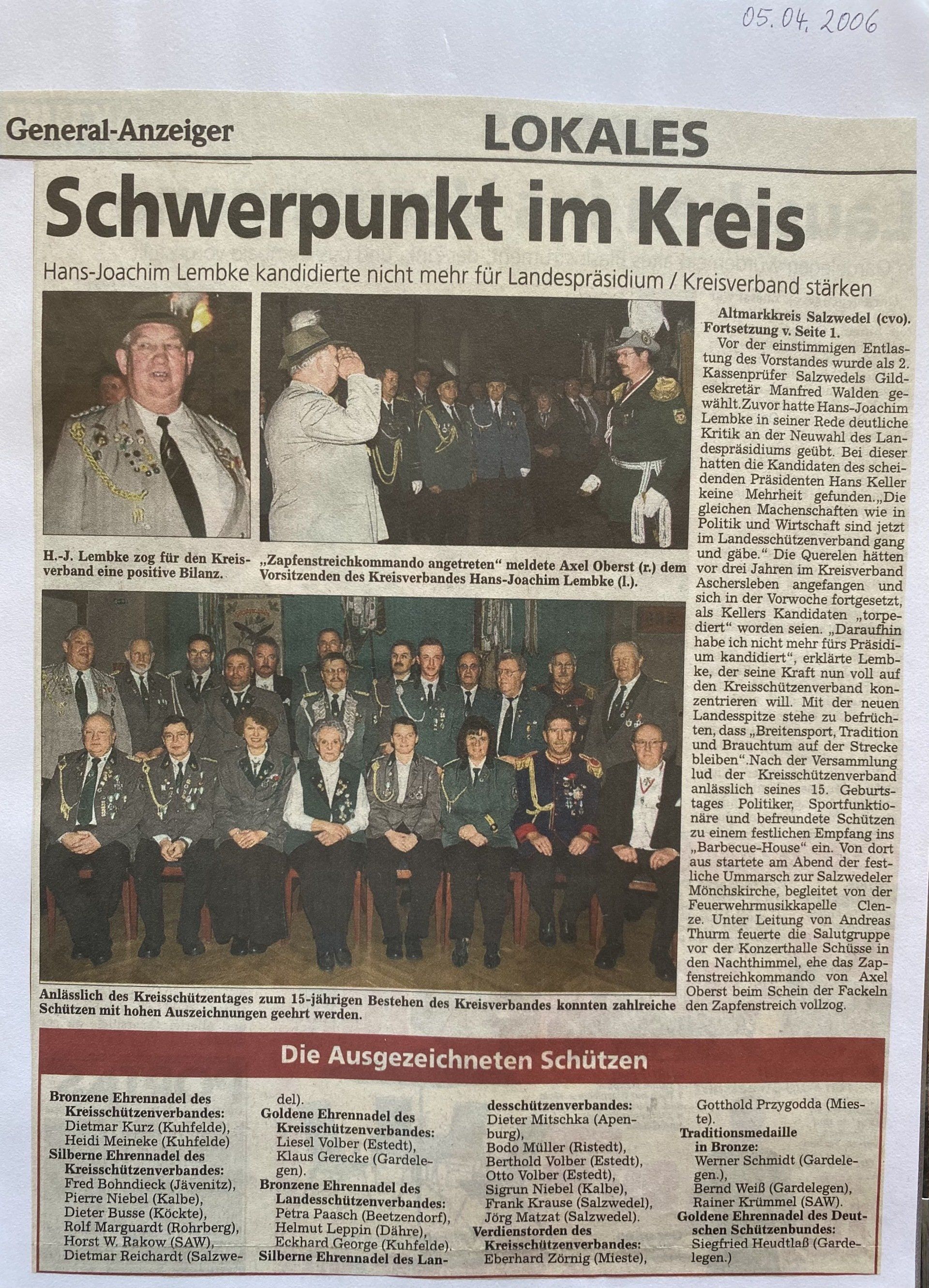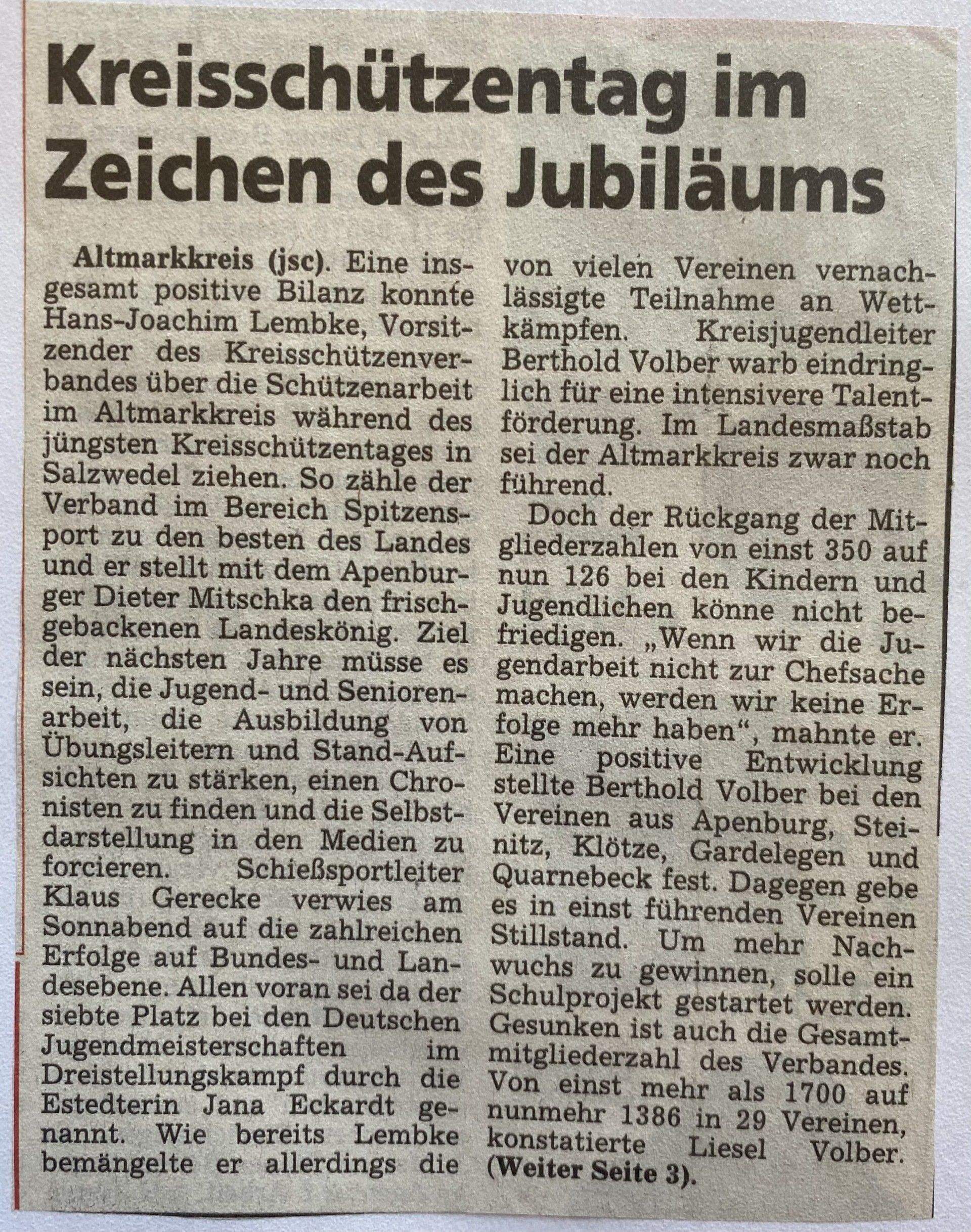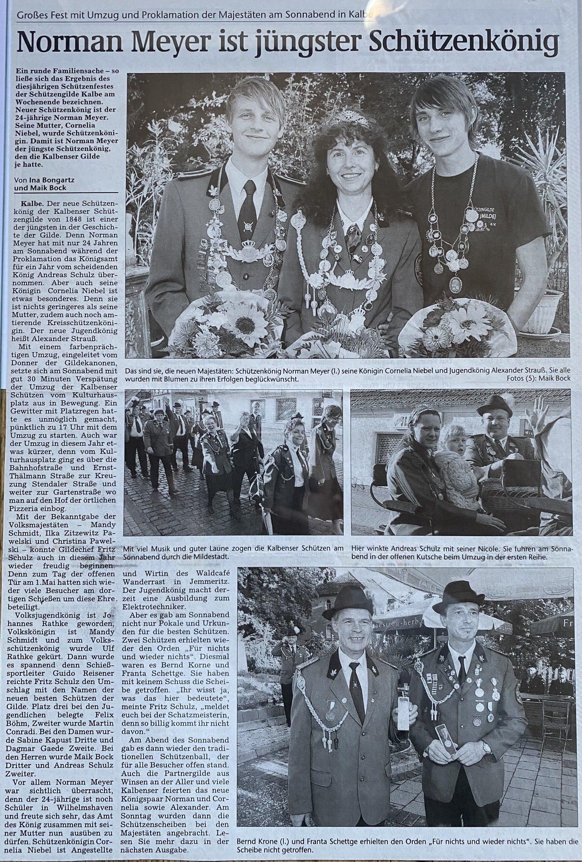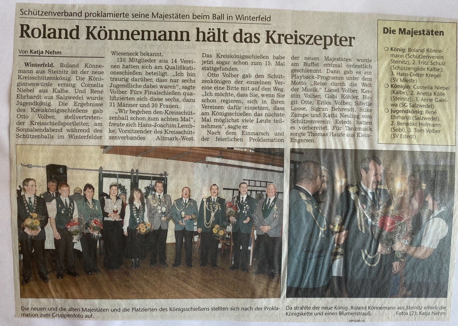 Hier finden Sie eine Liste aller Kreismajestäten, sowie unsortierte Presseberichte aus 30 Jahren Kreisschützenverband Altmark West e.V. mit seinen Vereinen und diversen Veranstaltungen.