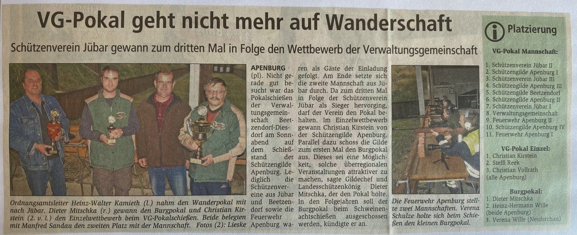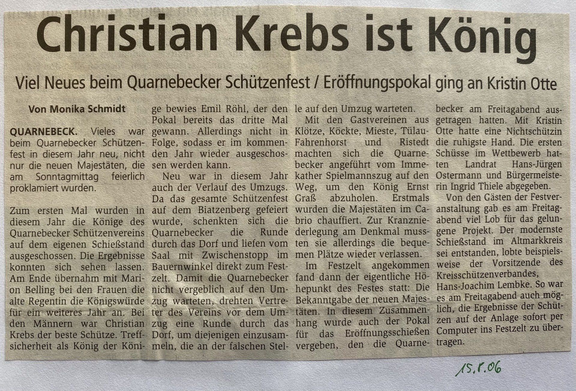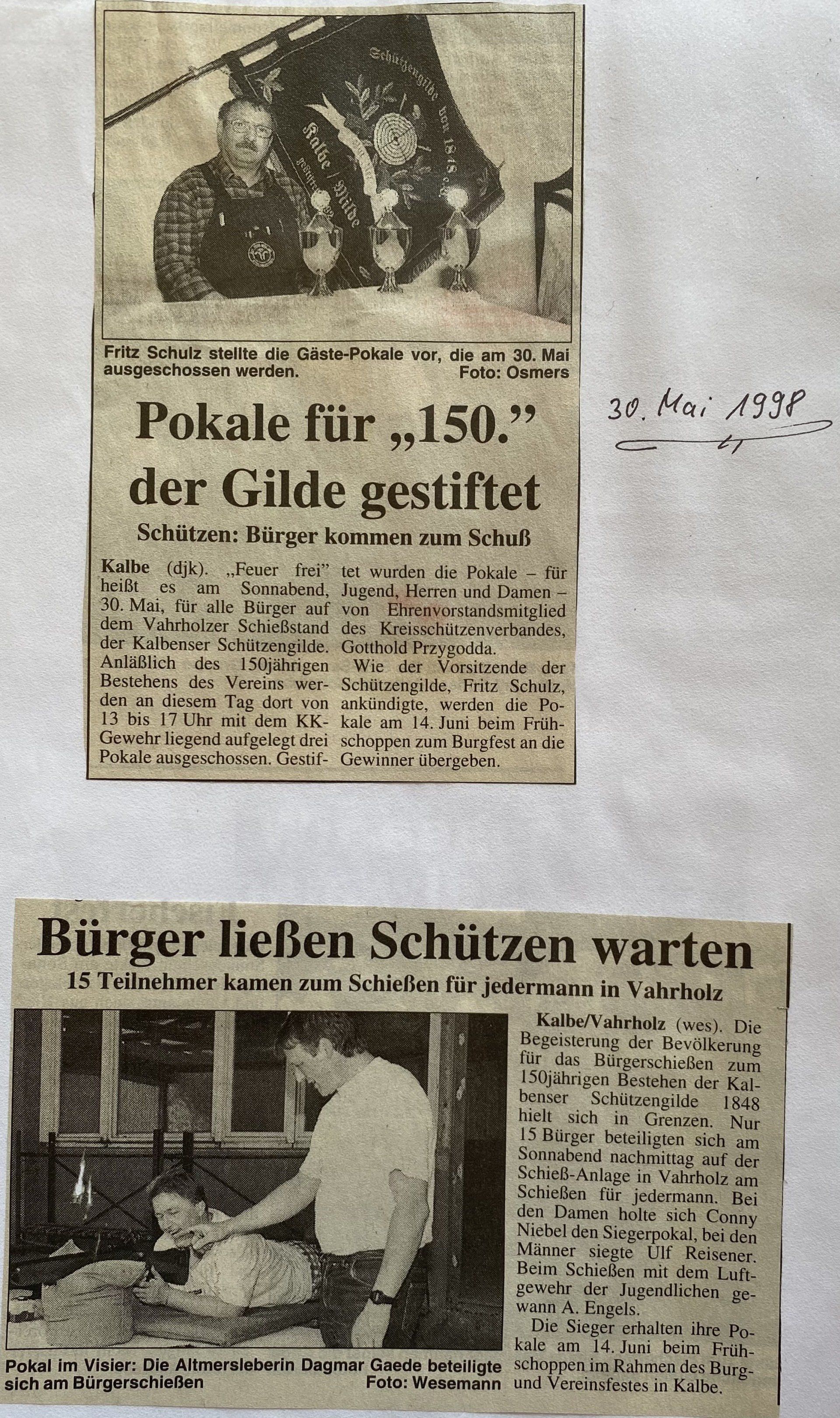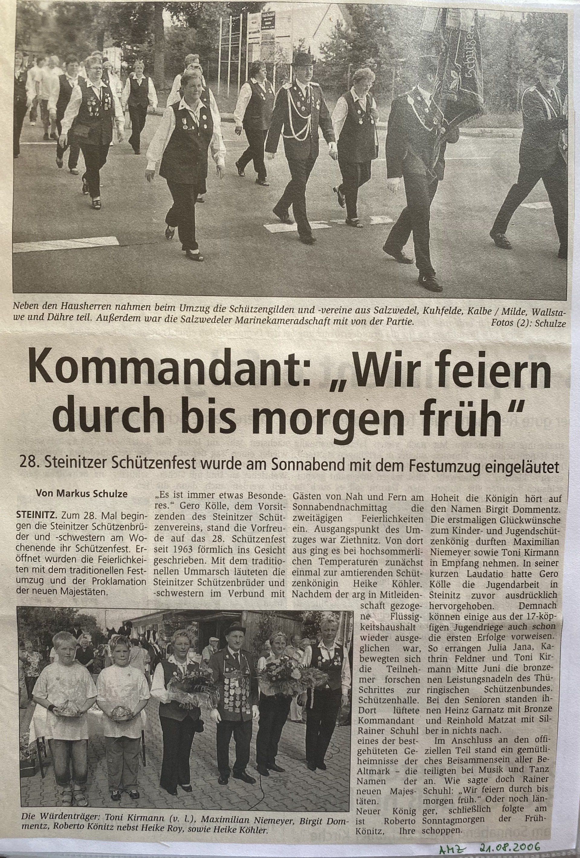 Hier finden Sie eine Liste aller Kreismajestäten, sowie unsortierte Presseberichte aus 30 Jahren Kreisschützenverband Altmark West e.V. mit seinen Vereinen und diversen Veranstaltungen.