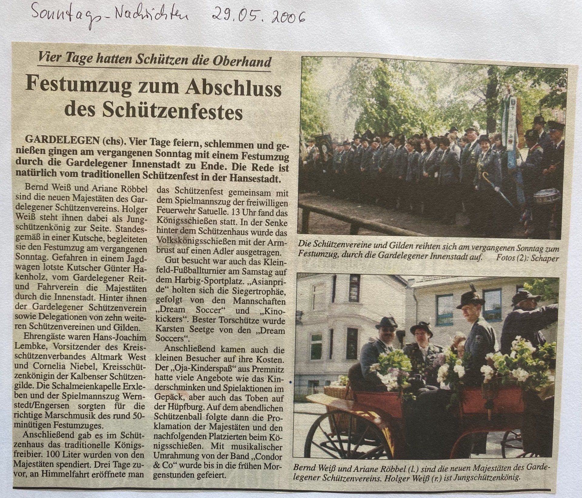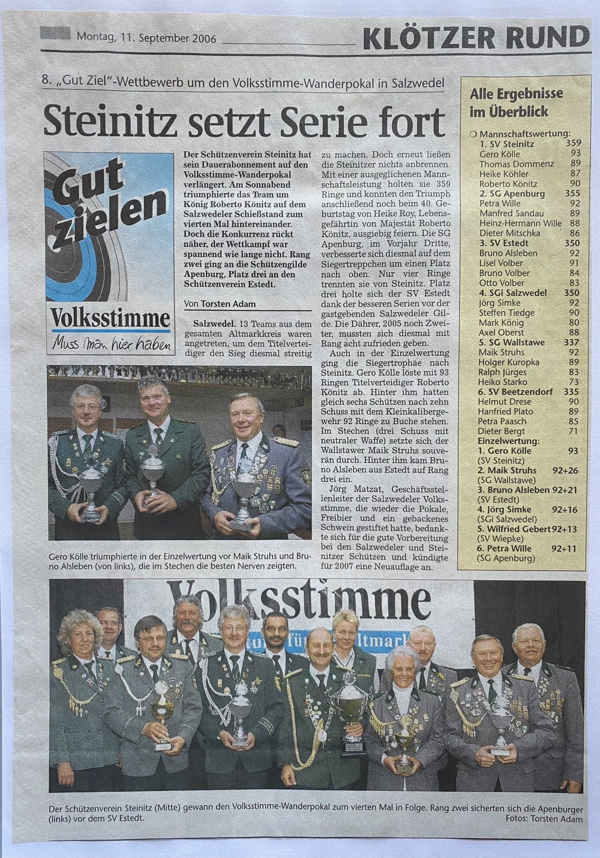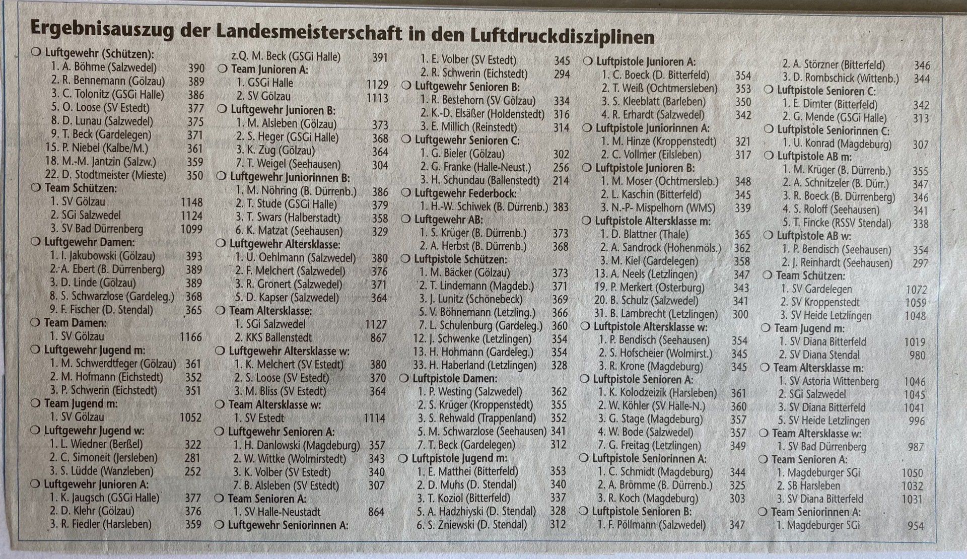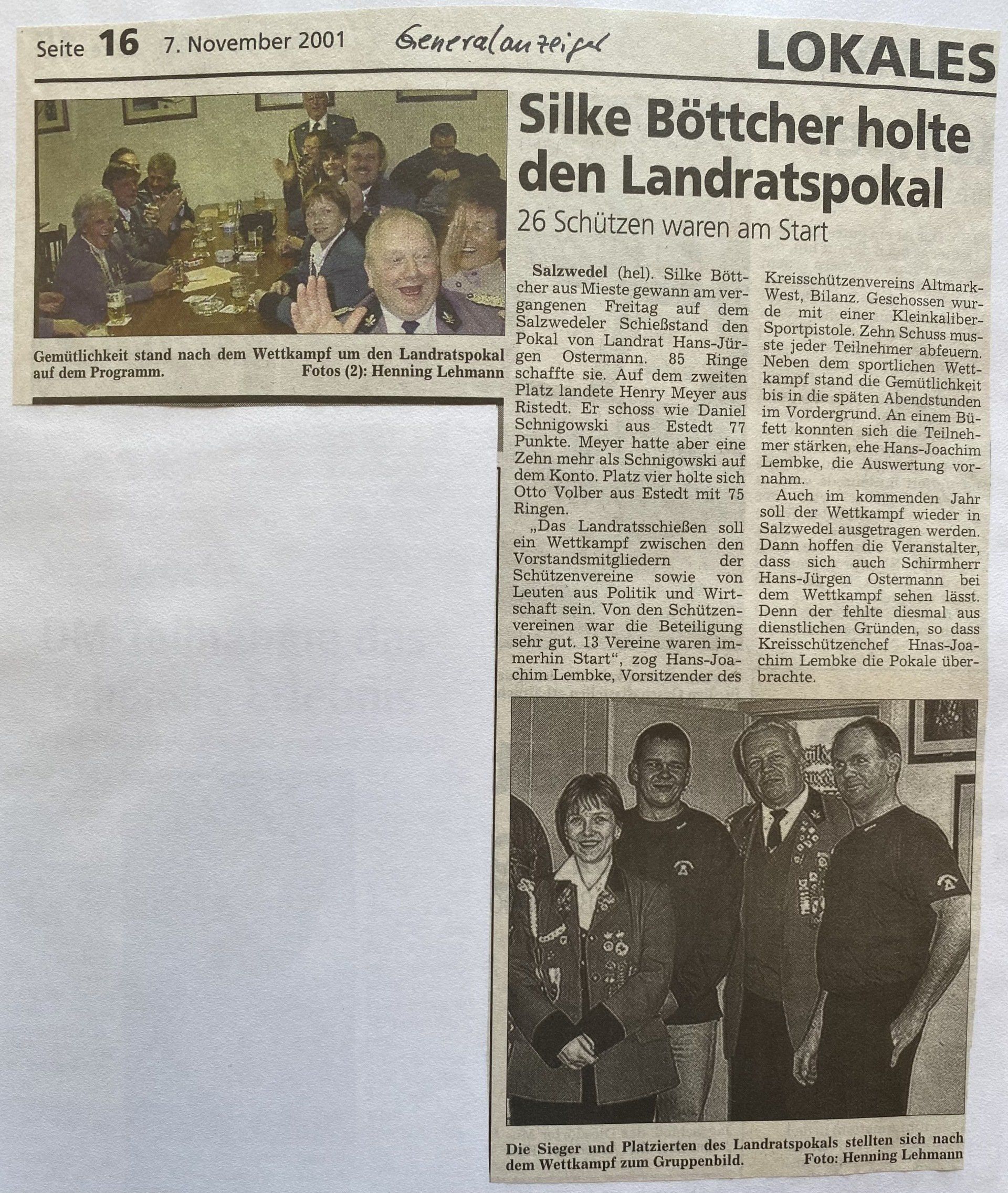 Hier finden Sie eine Liste aller Kreismajestäten, sowie unsortierte Presseberichte aus 30 Jahren Kreisschützenverband Altmark West e.V. mit seinen Vereinen und diversen Veranstaltungen.